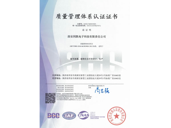 2011年5月20日初次获得北京新实际检验认证股份有限公司颁发的质量管理体系认证证书;